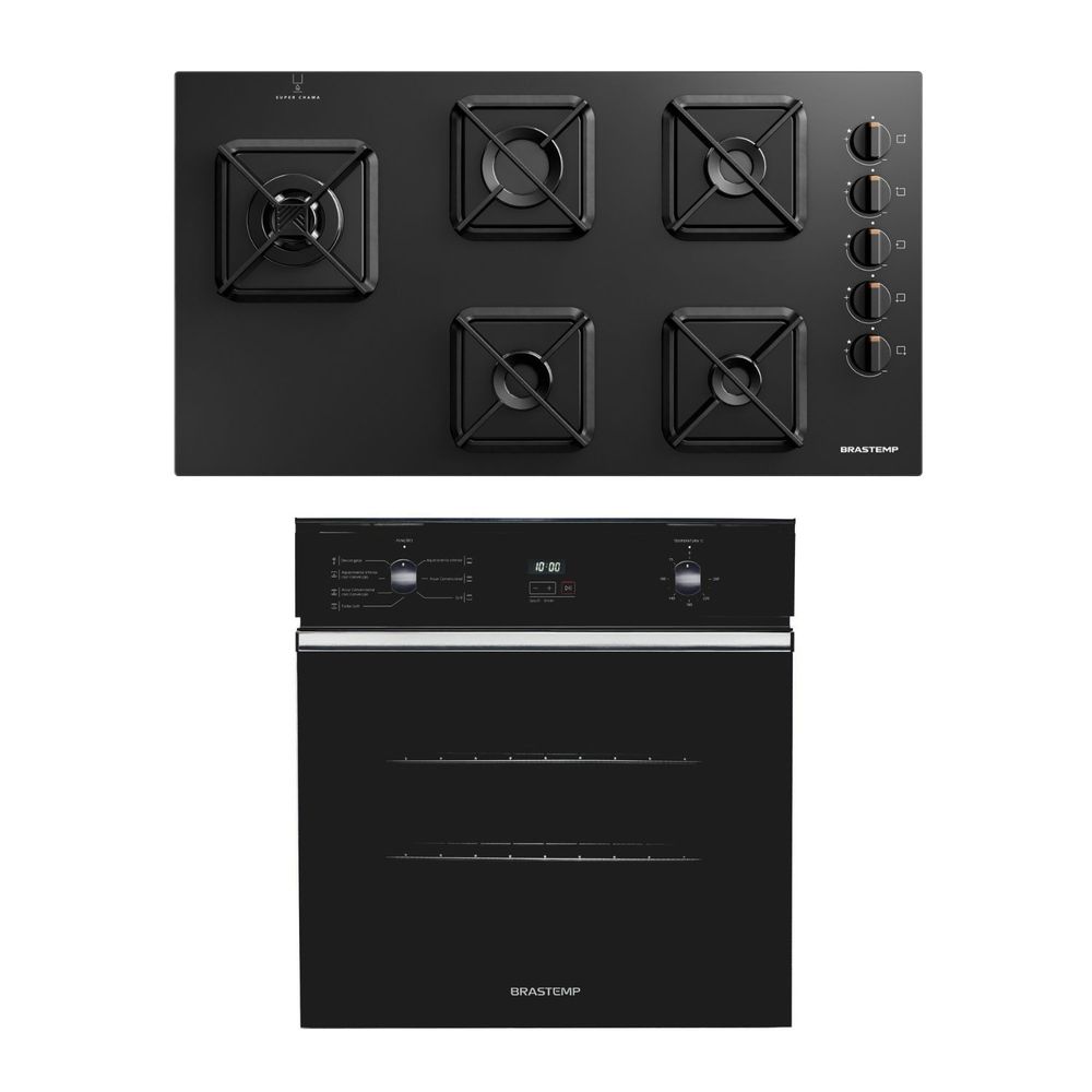 Combo Cooktop 5 Bocas a Gás Cor Preto + Forno de Embutir Elétrico 84 Litros Cor Preto Brastemp (BDS85AE + BOC84AE) - BD85_BC8A_CJ - 220V