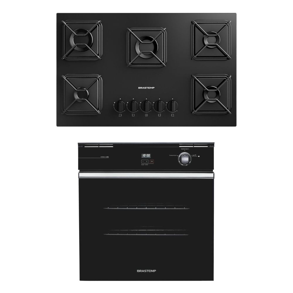 Combo Cooktop 5 Bocas a Gás Cor Preto + Forno de Embutir a Gás 78 Litros Cor Preto Brastemp (BDD75BE + BOA84AE) - BD75_BO8A_CJ - 220V
