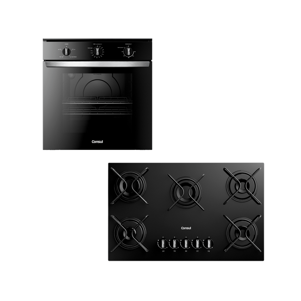Combo Forno Embutir Elétrico e Cooktop 5 Bocas Consul (COB84BE e CD075BE) – COB84_CD075_CJCOB84_CD075_CJ
