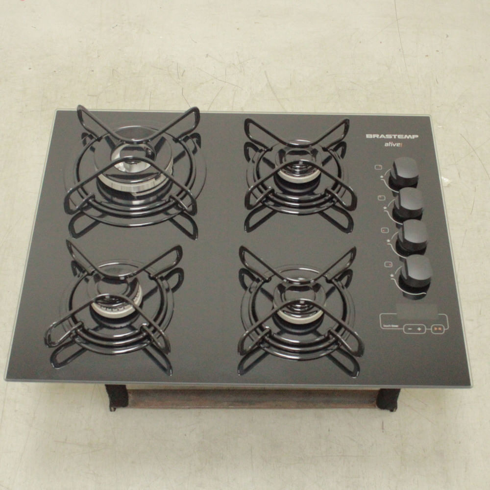 Seu cooktop Brastemp com 4 bocas é de vidro temperado e possui Touch Timer, que sinaliza quando o tempo programado estiver completo, ajudando a controlar de forma precisa o tempo de preparo das suas receitas. Ele vem com megachama, que proporciona mais potência e agilidade no preparo das suas receitas. Também possui grades de piatina com angulação, além de acendimento automático e botões removíveis. Sua alimentação é à gás e o produto é BIVOLT.