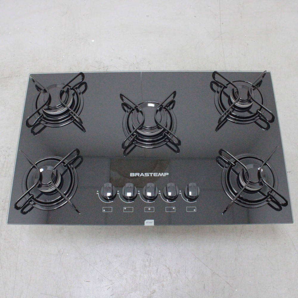 O Cooktop Brastemp 5 bocas tem grades de ferro piatina anguladas, garantindo encaixe perfeito e estabilidade para as panelas. A mesa de vidro temperado preto e os botões removíveis facilitam a limpeza. Além disso, os 2 queimadores rápidos, 3 semirrápidos e o acendimento automático aumentam a praticidade do cooktop.