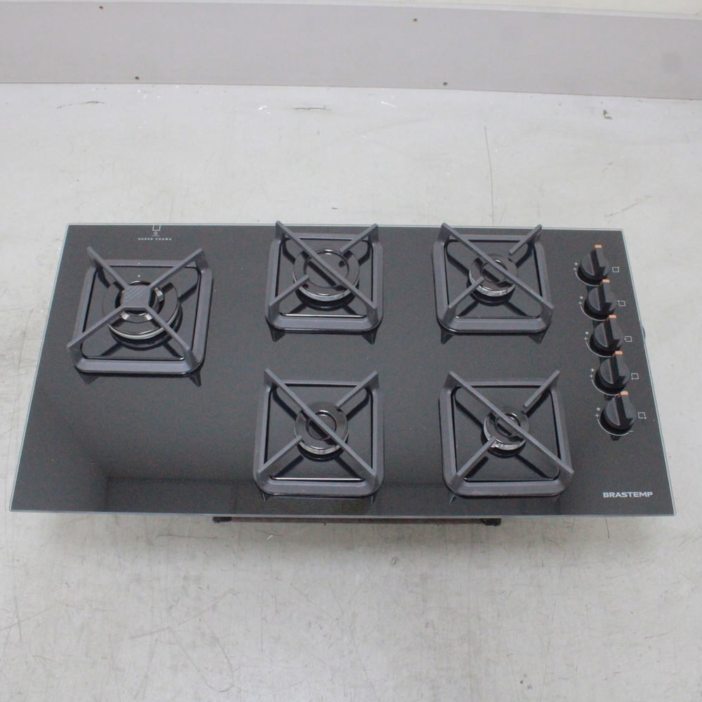 Cooktop Brastemp 5 bocas a gás, com grades de ferro fundido, super chama e acabamento premium. Confira!