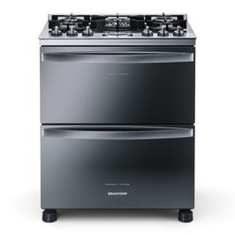 Fogão Brastemp 5 Bocas Duplo Forno Cor Inox Com Mesa De Vidro E Touch Timer Com Autodesligamento - BFD5VCR