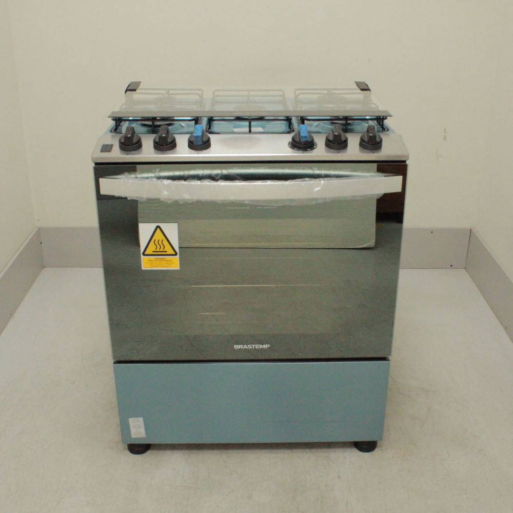 O fogão de piso Brastemp 5 bocas cor Inox é robusto e fácil de usar. Além da mesa de aço inox, o fogão tem grades duplas, botões removíveis com aro protetor para evitar a entrada de sujeira e um espaçoso forno de 96 litros que conta com 2 prateleiras de altura ajustável. Para facilitar a limpeza, as paredes do forno são esmaltadas e o vidro interno da porta pode ser facilmente removido.