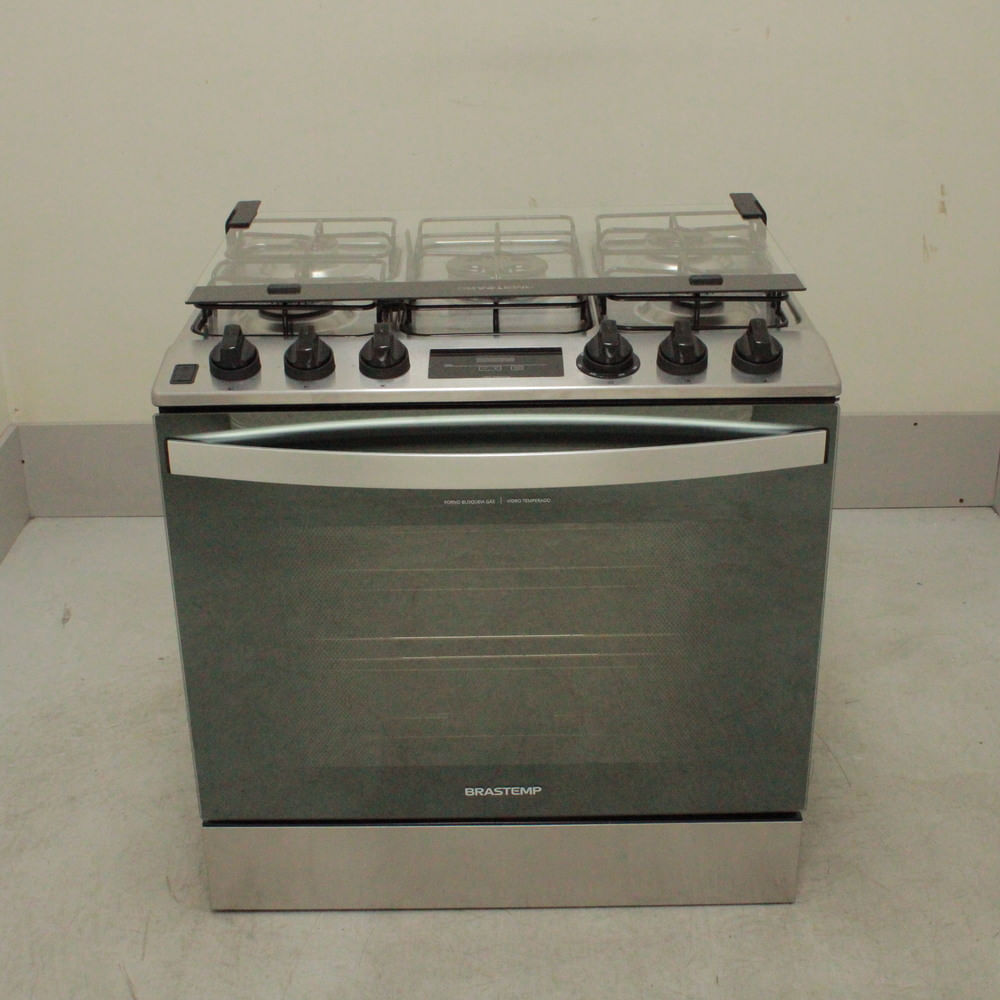 O fogão de embutir Brastemp 5 bocas cor Inox é moderno, robusto e fácil de usar. Além da mesa de aço inox, o fogão tem grades individuais, uma chama mais potente para preparos rápidos, a Turbo Chama, botões removíveis com aro protetor para evitar a entrada de sujeira e um espaçoso forno de 96 litros que conta com 2 prateleiras, uma de altura ajustável e outra autodeslizante. Para facilitar a limpeza, as paredes do forno são esmaltadas e o vidro interno da porta pode ser removido. Além disso, para ajudar a controlar o tempo de preparo das receitas, o timer emite um aviso sonoro ao final do tempo programado no painel digital.