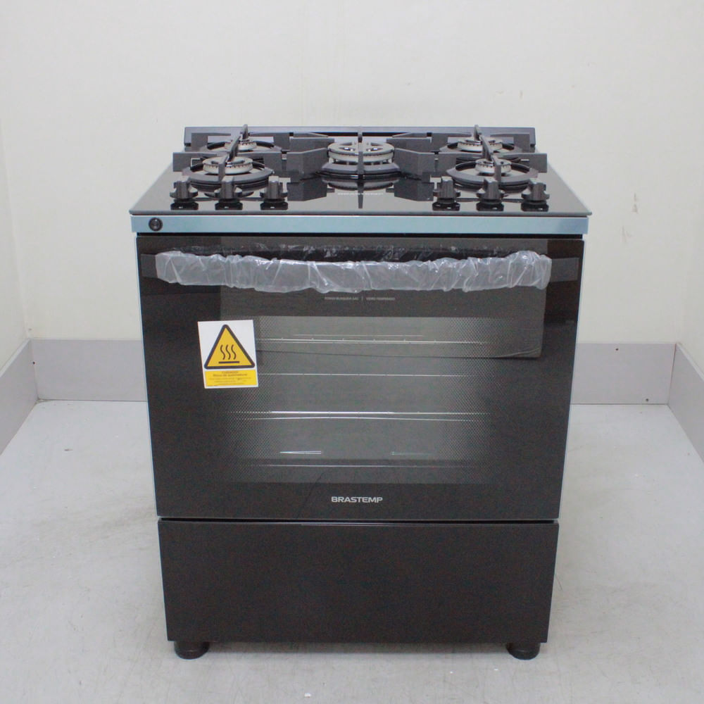Fogão Brastemp 5 Bocas Preto Com Mesa de Vidro e Turbo Chama - BFS5VCEUS2_WOTIMO_CB6294407 - BIVOLT