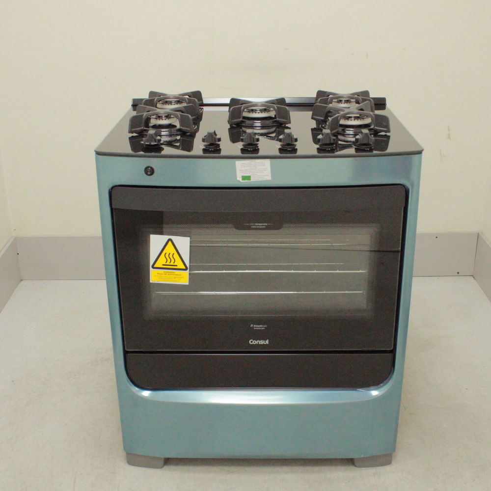 Fogão Consul 5 bocas cor Inox com mesa de vidro e trempe de ferro fundido - CFS5VARUS1_WEXCELE_CL5482053 - BIVOLT