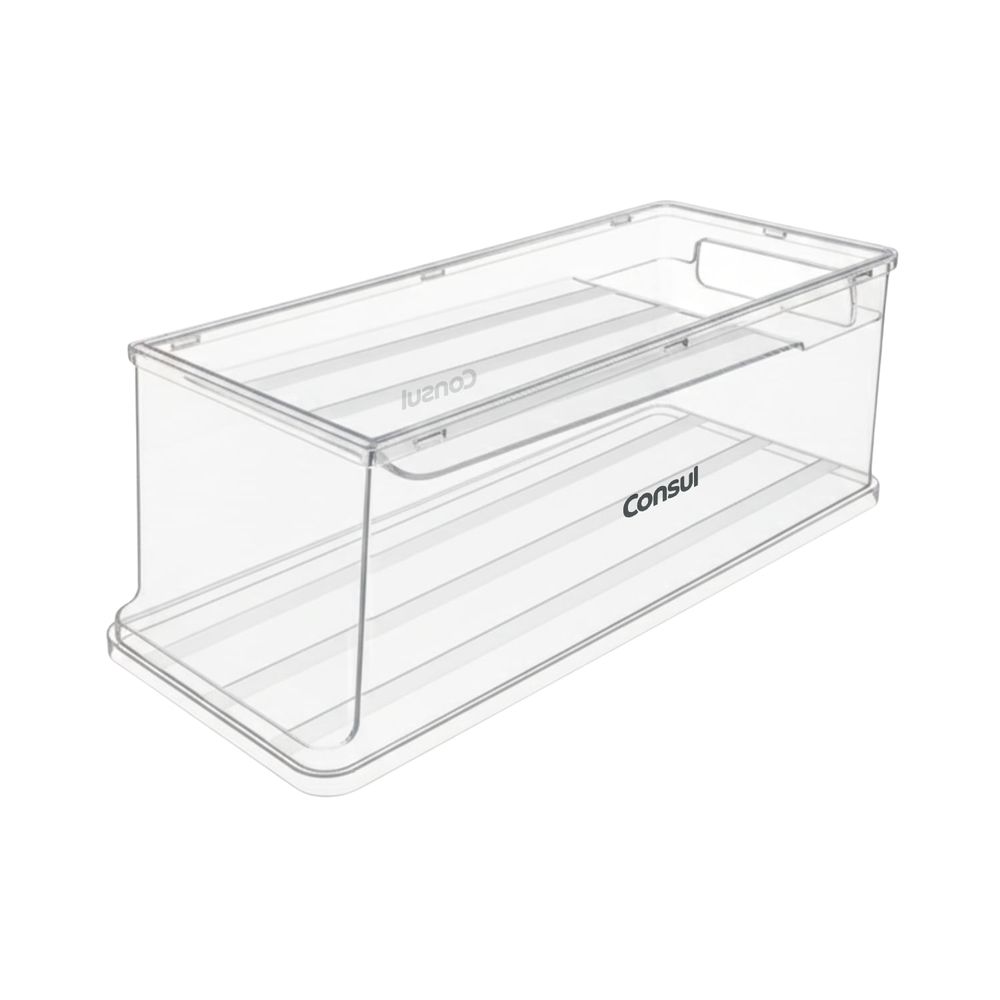 Porta latas modular/deslizante para geladeira ou freezer com capacidade de armazenar 10 latas em dois níveis, feito em PET de boa resistência.